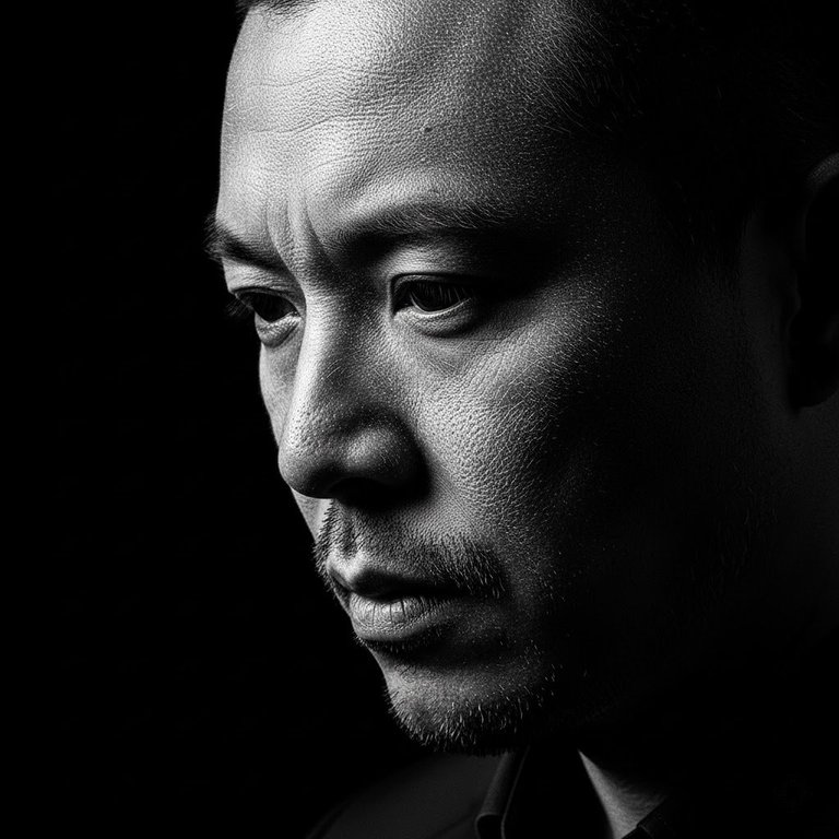 A detailed prompt for Nano Banana Pro to generate an 8K high-definition black and white portrait in a high-contrast woodcut or scratching style. The focus is a close-up of a man's face, emphasizing skin texture (pores, wrinkles, stubble) and dramatic, directional lighting to create sharp highlights and deep shadows, conveying a sense of introspection or solemnity. The generation is based 100% on the facial features of an uploaded image.