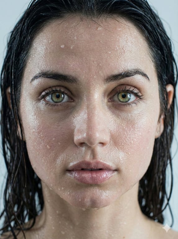 A highly technical prompt focused on generating an extreme profile close-up of Ana de Armas, emphasizing hyper-realistic skin textures, moisture effects (sweat and micro-droplets), and strict identity preservation, using an 85mm macro lens style.