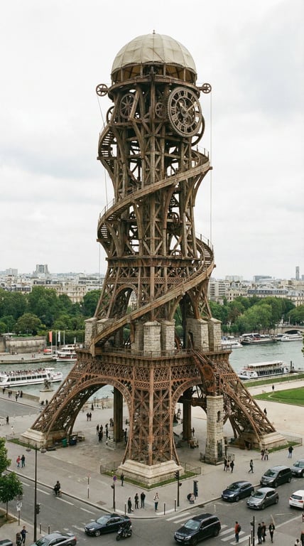 This prompt is designed for hyper-realistic image generation, imagining what a famous global landmark would look like if it were designed by a historical figure or famous designer. It emphasizes structural plausibility, consistency with the designer's style, and rendering the result as an authentic, modern, on-location photograph with realistic lighting and context.