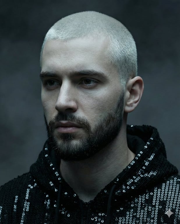 A detailed prompt for Nano Banana Pro to create a hyper-realistic, editorial-style portrait of a young man with specific features, clothing (black sequined hooded jacket), and technical photography details (Hasselblad X2D, 85mm, soft overhead lighting). The prompt explicitly requires preserving the face from a reference image.