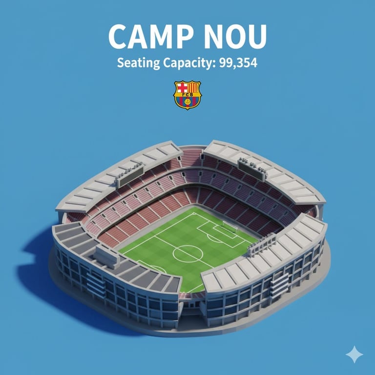 A prompt for generating a detailed isometric 3D infographic rendering of the Camp Nou stadium in Barcelona, emphasizing miniature scale, architectural detail, and a clean, modern design style.