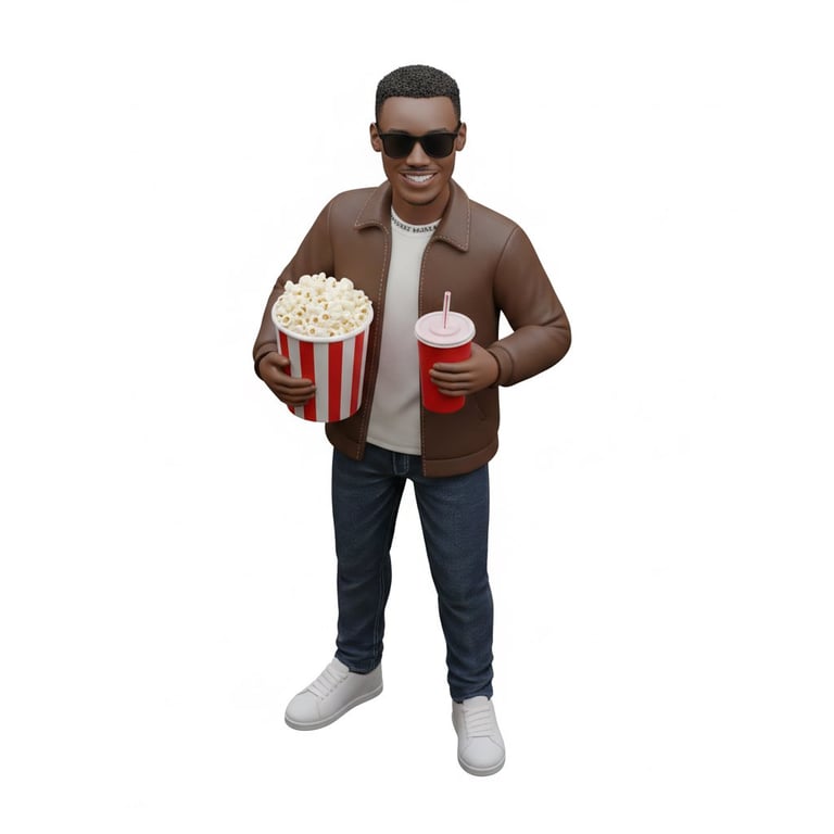 A template prompt for generating a miniature, full-body, isometric, realistic figurine of a person based on an uploaded selfie. It allows customization of the figure's attire and action.