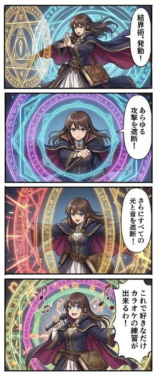 A prompt test for drawing a complex, multi-layered magical barrier (Kekkai Jutsu). The user wanted a more dome-like structure and color consistency based on attribute, indicating the prompt was focused on detailed magical effects.