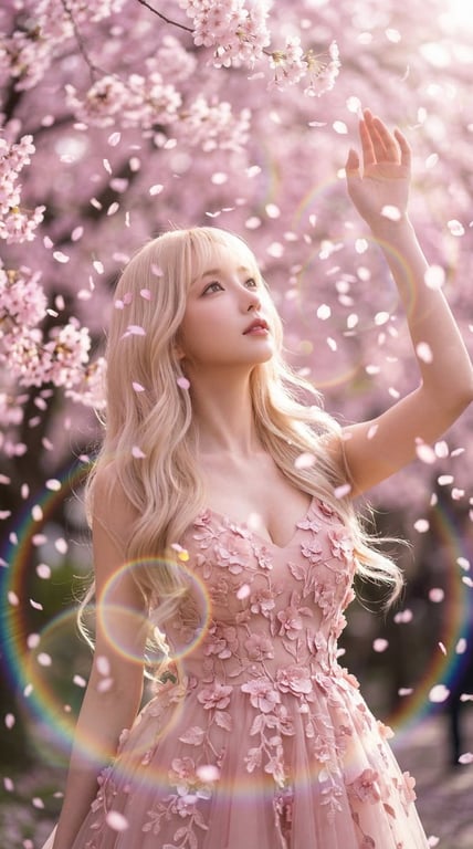 A shared prompt for Nano Banana 2, designed to generate images of cherry blossom petals falling from the sky, described as a quiet moment of spring, with instructions for users to try it with their own character images.