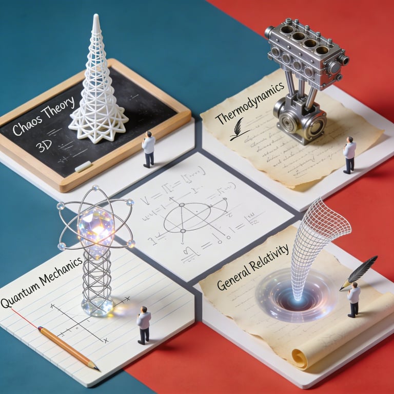A highly structured, multi-phase prompt designed for Nano Banana Pro to visualize complex scientific or mathematical theories. It instructs the model to decompose the theory into visual language, transition from 2D notation to a 3D impossible structure, and include a scale-model observer (the scientist) in an isometric, designer toy style.