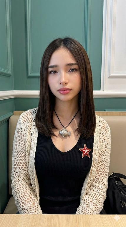 A highly detailed prompt for Gemini Nano Banana 2, focusing on generating natural photos with specific technical parameters (iPhone 17 Pro, 35mm, f/2.8) and aesthetic enhancements (Glow-Up Protocol for skin/jawline). It describes a seated woman in technical black and cream layered attire in a pixel-perfect indoor setting.