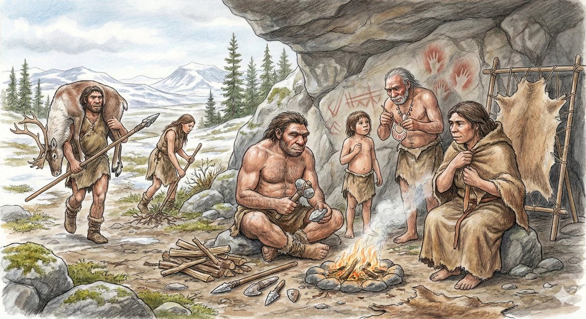 A discussion about generating historically accurate images of Neanderthals using AI, specifically mentioning the need to include 'based on expert knowledge of Neanderthal behavior' in the prompt for the Nano Banana model.