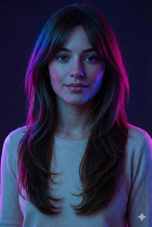 A prompt for applying a specific lighting styleâdark base lighting with bright neon accents along the edges of the face and hairâto an uploaded photo. It strictly requires preserving the original face, body, and texture without any beautification or structural changes.