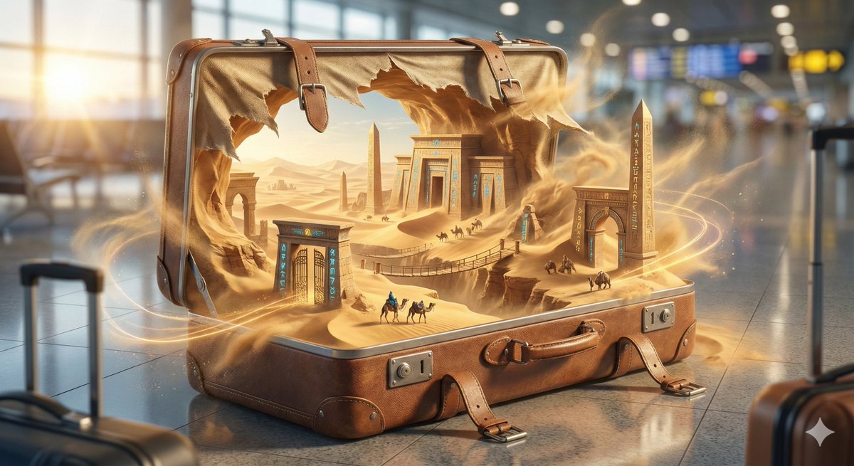A cinematic concept art prompt for generating a 3D composition where a single object is frozen at the moment it releases a vast, complex reality. The prompt describes the object transforming into terrain, architecture, and symbolic landmarks, with small figures navigating the scene. It emphasizes hyper-detailed textures, dramatic lighting, and a charged atmosphere of rupture and emergence.