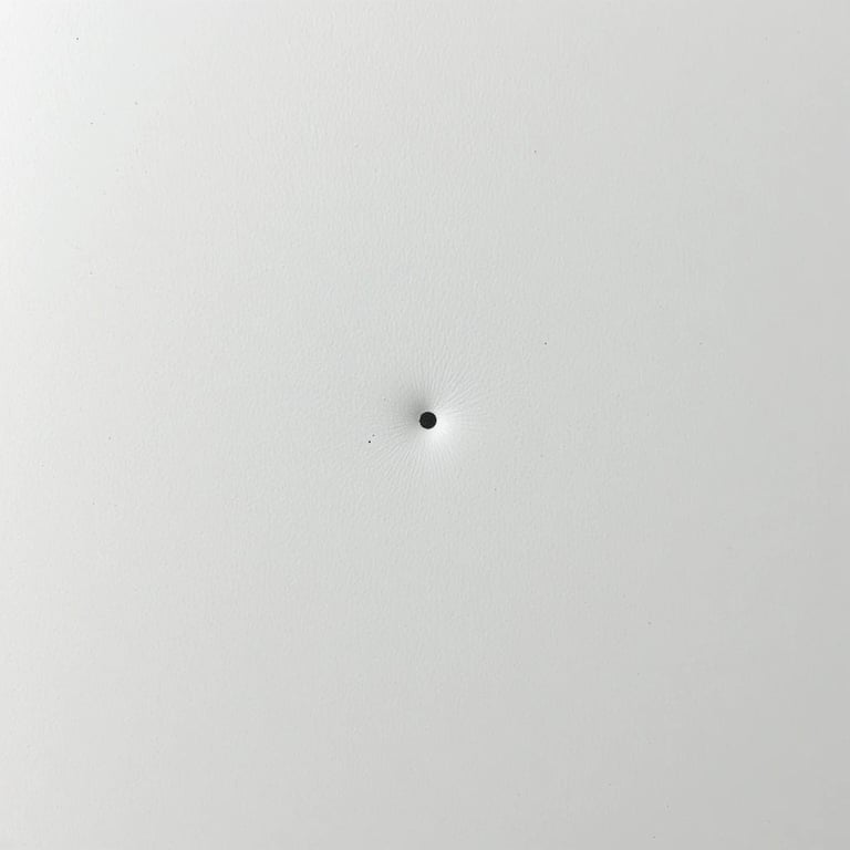 An extremely abstract and philosophical prompt demanding the generation of a single, perfect black point at the center of a perfectly white canvas. The prompt uses highly technical and conceptual language to enforce absolute purity, uniformity, and a complete absence of error or noise, aiming for a conceptual art piece.