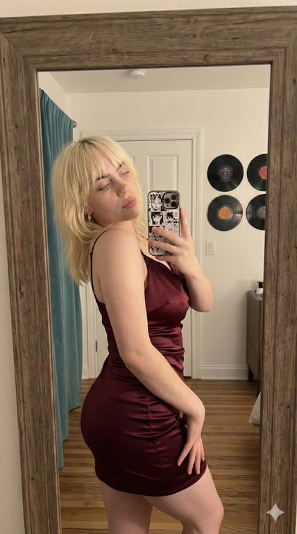 A highly detailed, structured prompt for generating a photorealistic mirror selfie of a young woman in a reflective satin mini dress. It meticulously defines the subject's appearance, outfit, accessories (including a graphic phone case), the cluttered bedroom environment, and the warm indoor lighting, aiming for a high-quality, candid social media aesthetic.