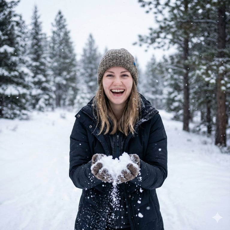 A photorealistic prompt focused on generating a portrait of a girl in a snowy landscape, emphasizing the preservation of a reference identity, proper winter attire, soft natural lighting, and high detail for realistic skin texture and snow particles.