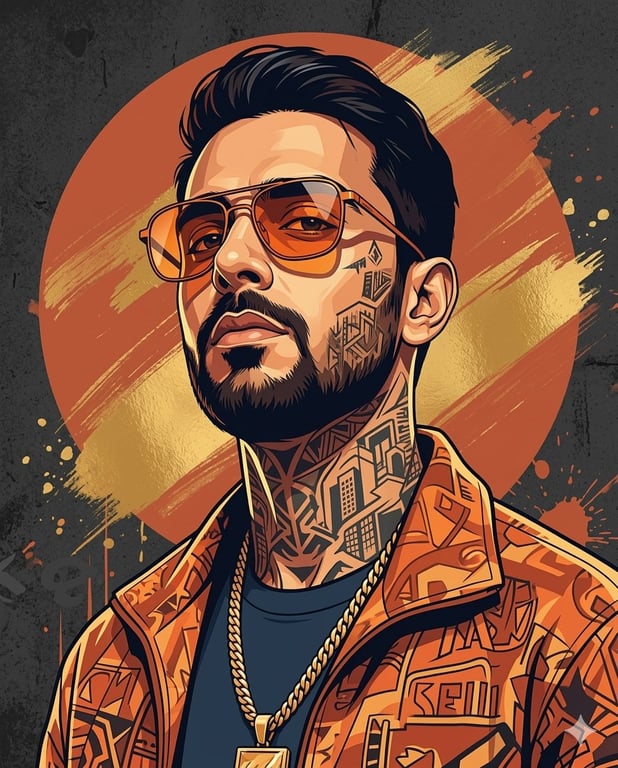 A detailed prompt for Gemini Nano Banana 2 requesting a stylized low-angle chest-up urban portrait, emphasizing the strict use of a reference image for the subject's face and identity while translating the style to a bold graphic digital illustration.