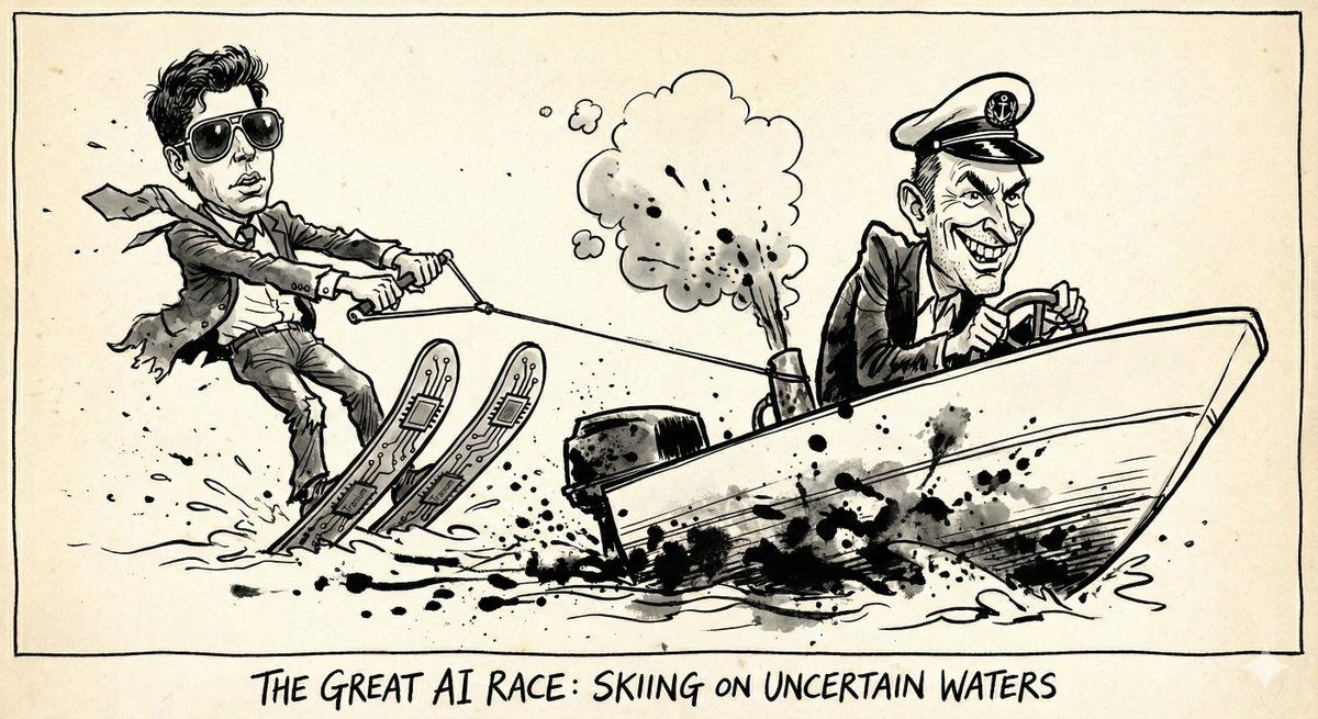 A simple, creative prompt used to test the capabilities of Nano Banana Pro against another image model, featuring two prominent tech CEOs in a humorous, surreal scenario.