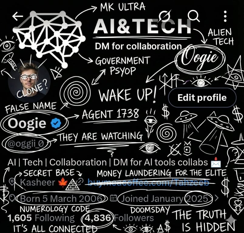 A short, destructive prompt instructing the AI to overlay an existing image (referenced by the tweet) with 'insane schizophrenic conspiracy scribbles, white ink, doodles, remarks, comments.'