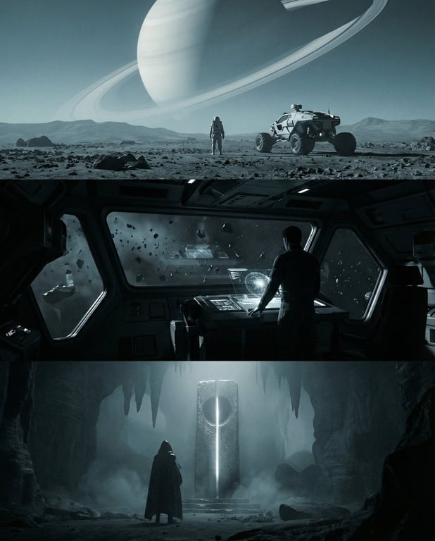 A pair of prompts to create a cinematic sci-fi triptych in a 4:5 composition and then expand each panel into full 4:5 scenes, inspired by Roger Deakins and IMAX framing.