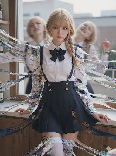 A multi-layered prompt designed to recreate the 'spaghettification' or disintegration effect seen in the Loki TV series. It uses four distinct layers of instructions to ensure background stability, violent unraveling of the subject's edges into non-glowing ribbons, analog glitch overlay concentrated only on the edges, and ghostly motion-blur afterimages behind the subject.