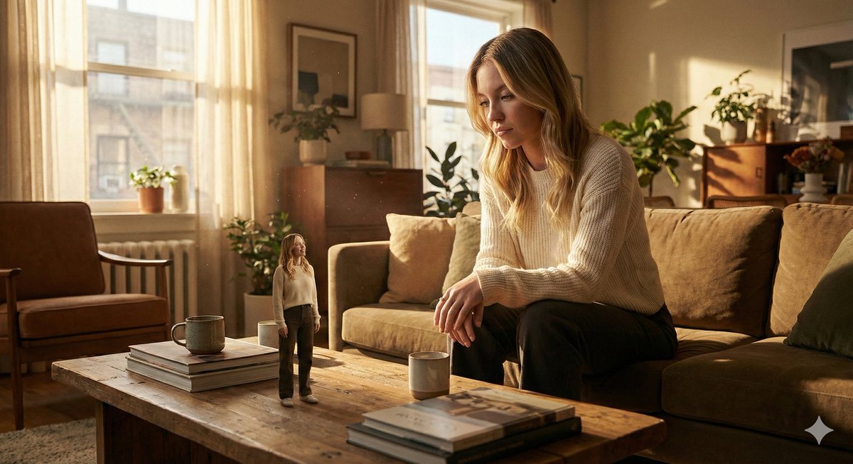 A complex, multi-scene JSON prompt for generating surreal images featuring Sydney Sweeney at drastically different scales (giant and micro) within detailed environments, emphasizing scale disparity, cinematic lighting, and a magical realism mood.