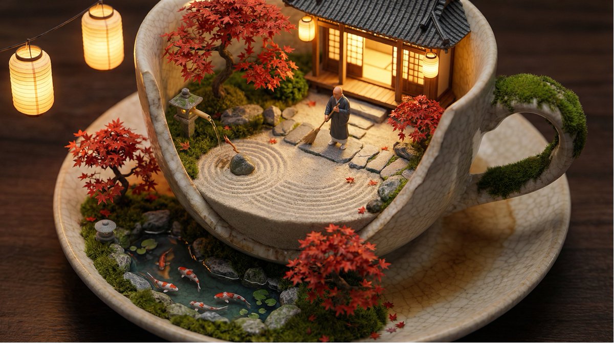 A customizable prompt template for generating a hyper-detailed macro photograph of a miniature scene (like a beach or forest) built inside a small container (like a lightbulb or seashell), utilizing tilt-shift blur and magical realism style.