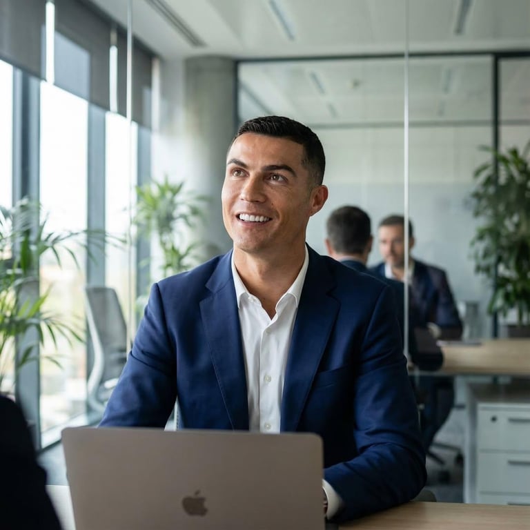 A prompt for generating an ultra-realistic corporate lifestyle portrait of a professional man in a modern office. It specifies a candid pose, tailored business attire, bright contemporary setting with glass walls, and soft natural daylight, aiming for a professional, approachable, and highly detailed aesthetic.